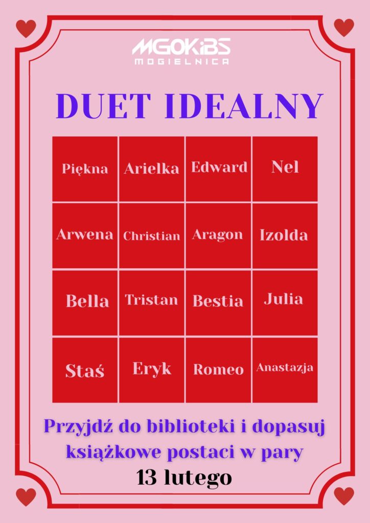 Już 13 lutego zapraszamy do biblioteki MGOKiBS na wyjątkową zabawę literacką „Duet idealny”!