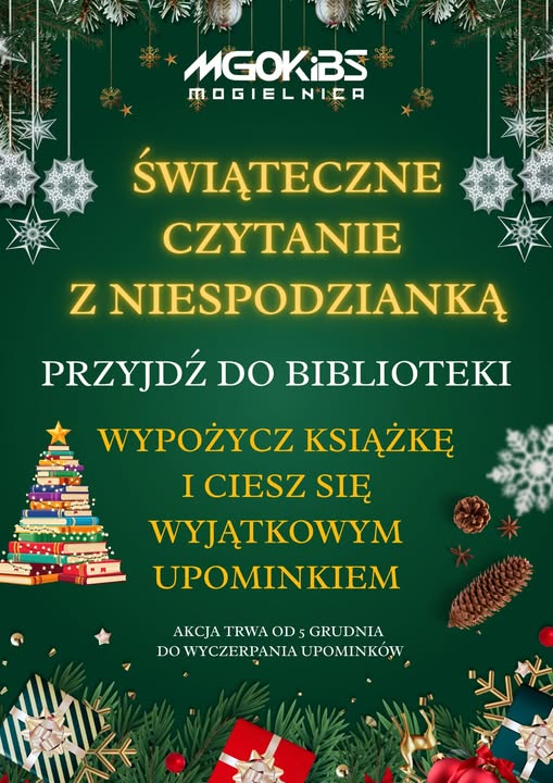 Zapraszamy do biblioteki na wyjątkową świąteczną akcję! Wypożycz książkę i ciesz się miłym upominkiem przygotowanym specjalnie dla naszych Czytelników. ![]()