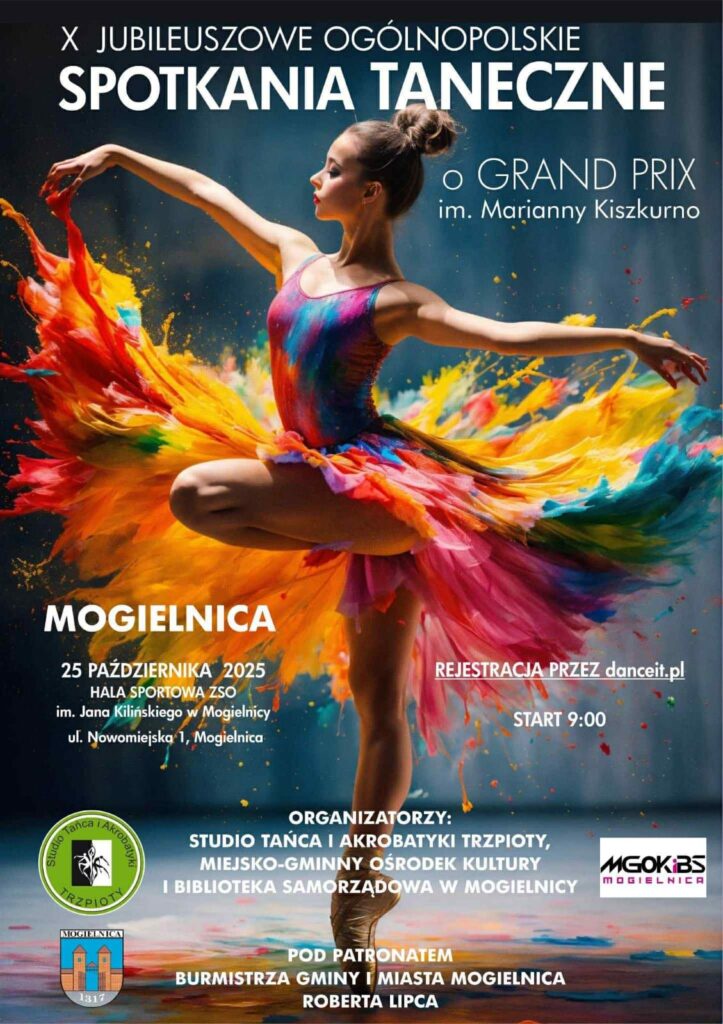 Z ogromną radością zapraszamy wszystkich miłośników tańca na dziesiątą, jubileuszową edycję Ogólnopolskich Spotkań Tanecznych w Mogielnicy! Przed nami wyjątkowy dzień pełen emocji, artystycznych wrażeń, barw i ruchu!