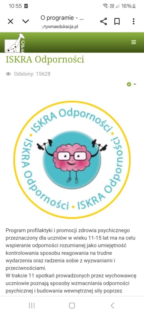 Program „ISKRA Odporności” znajduje się na krajowej liście rekomendowanych programów profilaktyki uniwersalnej i promocji zdrowia psychicznego.