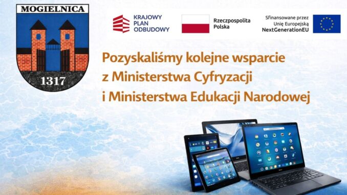 Gmina Mogielnica otrzymała kolejne wsparcie z Ministerstwa Cyfryzacji i Ministerstwa Edukacji Narodowej. Te dwie instytucje realizują zadanie w ramach Krajowego Planu Odbudowy i Zwiększania Odporności (KPO). W zakresie inwestycji: C2.1.2 Wyrównanie poziomu wyposażenia szkół w przenośne urządzenia multimedialne – inwestycje związane ze spełnieniem minimalnych standardów sprzętowych, wskaźnik C15G – „Nowe komputery przenośne (laptopy, laptopy przeglądarkowe i tablety ) do dyspozycji uczniów”. Szkoły dla których organem prowadzącym jest Gmina Mogielnica zostały nieodpłatnie wyposażone w nowoczesny sprzęt — laptopy, laptopy przeglądarkowe oraz tablety — przekazane z myślą o wspieraniu uczniów w ich codziennej edukacji.