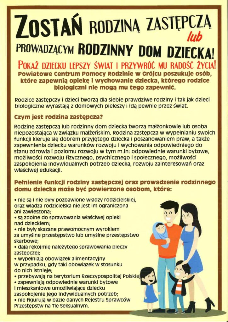 Powiatowe Centrum Pomocy Rodzinie w Grójcu poszukuje osób, które zapewnią opiekę i wychowanie dziecka, którego rodzice biologiczni nie mogą mu tego zapewnić.