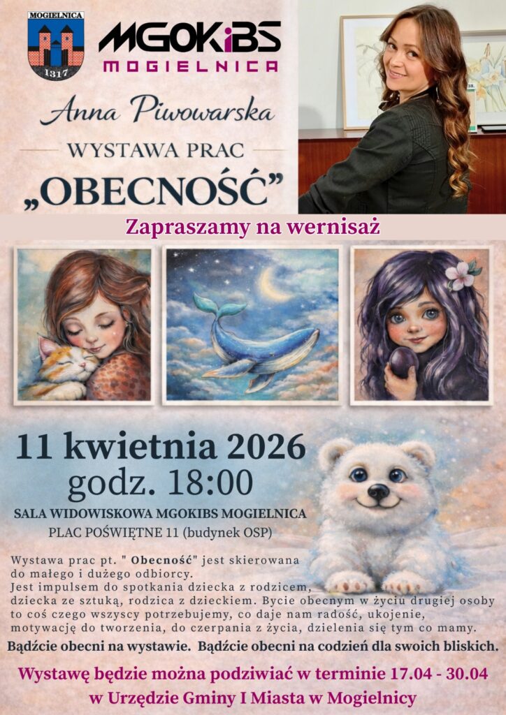 Miejsko-Gminny Ośrodek Kultury i Biblioteka Samorządowa w Mogielnicy zaprasza na wystawę prac Anny Piwowarskiej pt. „OBECNOŚĆ” – wernisaż Anny Piwowarskiej w MGOKiBS MOGIELNICA