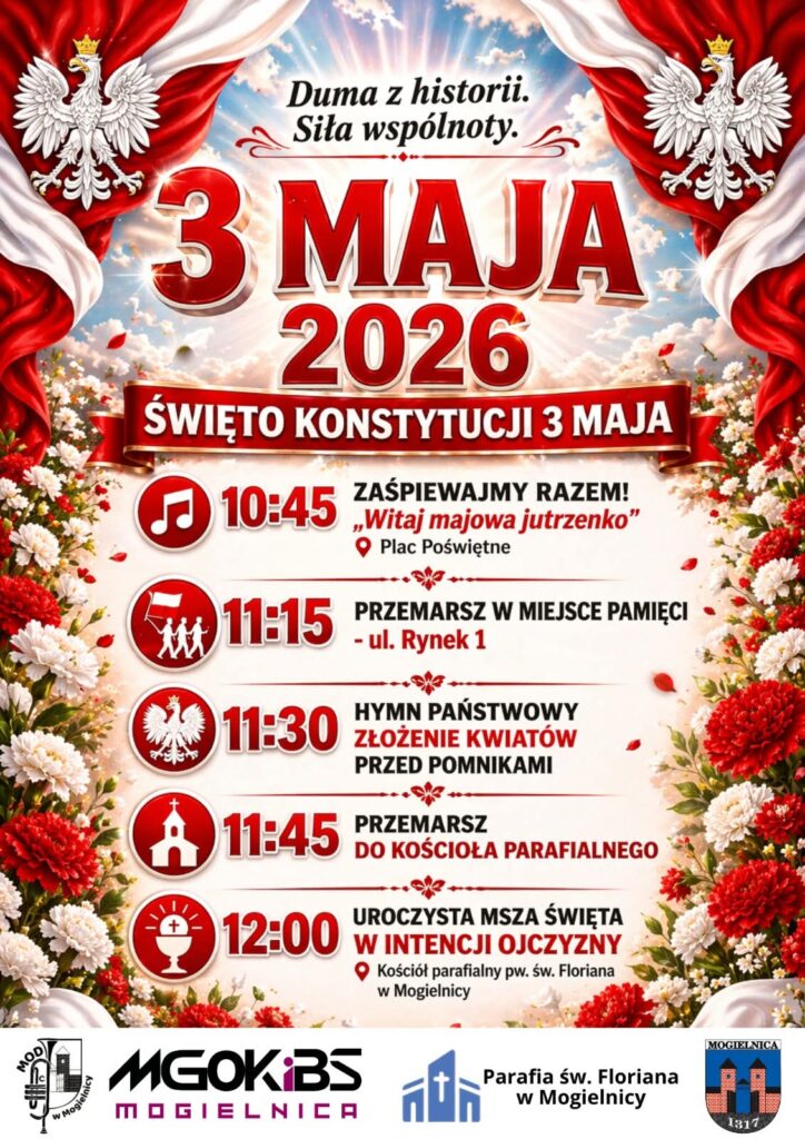 Zapraszamy na wspólne obchody Święta Konstytucji 3 Maja w Mogielnicy 🇵🇱